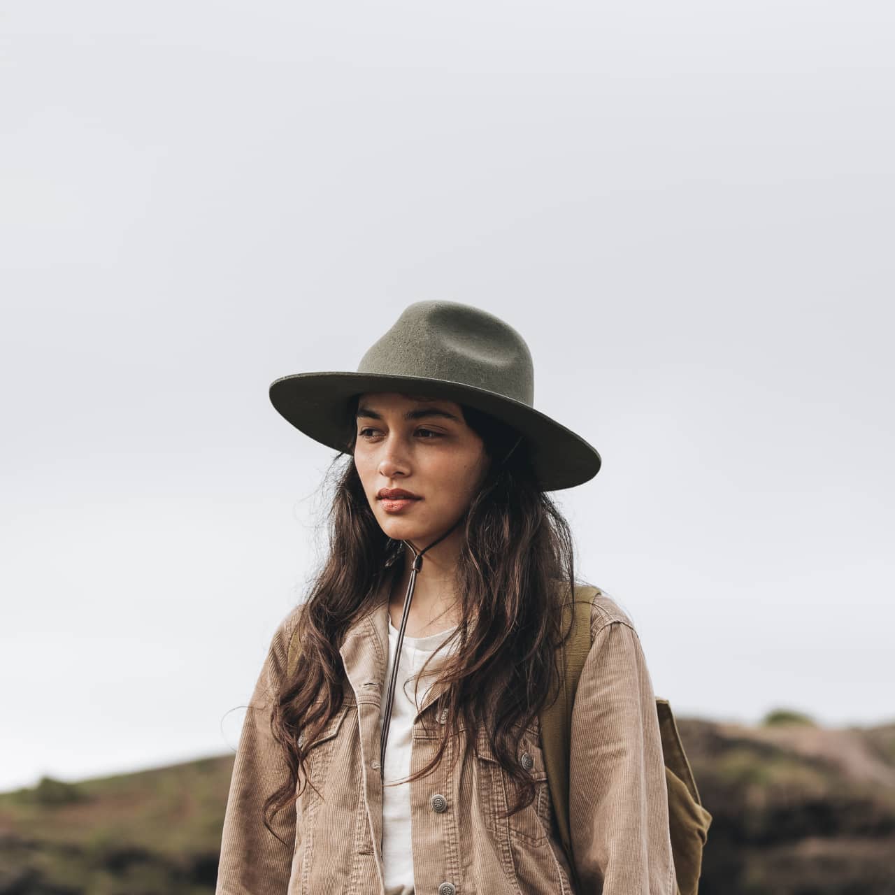 A rich green outdoor hat with a stiffened wide-brim and a pinched round crown. Featuring a premium adjustable chinstrap to keep it secured on and off your head and a size adjustable sweatband to ensure the perfect fit. Made from 100% Australian wool.